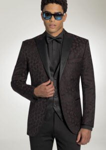 Brunomagli has always created fashion forward suits and tuxedos and Aldo black tuxedo jacket is no exception. The burgundy and black jacket is made with