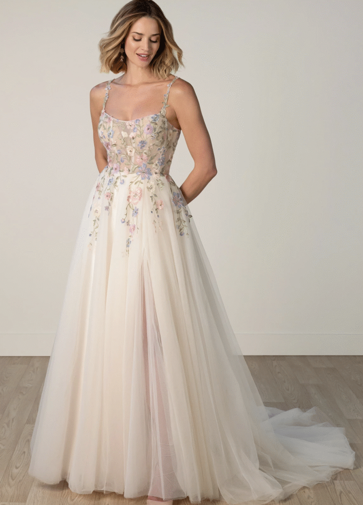 You aren’t buying a dress to please your friends, you are buying the dress to marry your BEST friend, the love of your life and continue your love story together. There is no right or wrong. If a colorful wedding dress is your vibe, try them all to find your dream dress. The new collections are being released now for spring 2026 and our modern designers are adding different wedding color trends all the time!