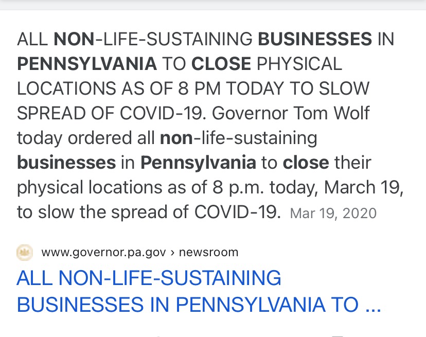 The second wave hit on March 19th. Pennsylvania Gov. Tom Wolf ordered all nonessential businesses to close. We had to lay off our employees. Our store would not open again until June 5th.