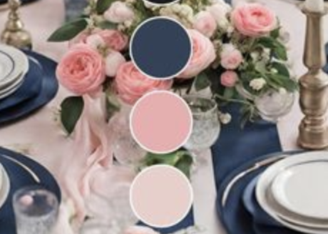 Navy blue and dusty rose is a sophisticated and elegant color combination that works well for a formal spring wedding. This palette is perfect for a black-tie optional wedding or a wedding with a classic theme.