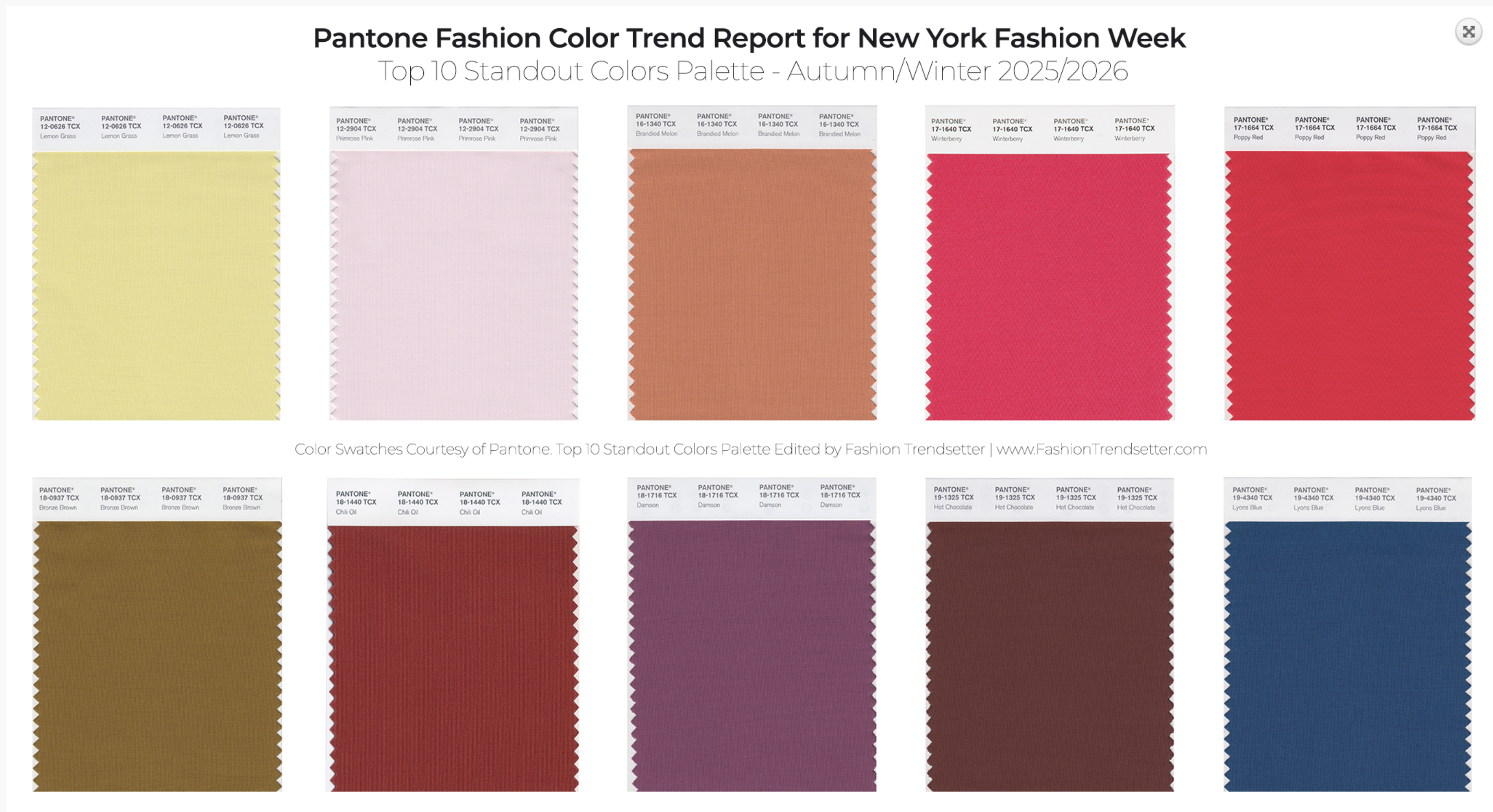 According to the trend report from New York fashion week, the Pantone color trends for fall and winter 2025 are “imbued with a feeling of effortless glamour, colors for NYFW Autumn/Winter 2025/2026 are approachable and accessible”.