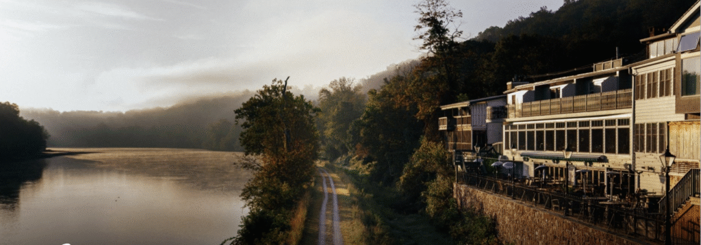 Black Bass Hotel – perfectly situated on the Delaware river with spectacular views, beautiful and modern overnight suites, and the rustic charm you would expect from one of the oldest inns in the country. Built in 1745, the Black Bass Hotel is listed in the National Register of Historic Places. *Franco and I had our own dream wedding here in December 2021 and it was spectacular!