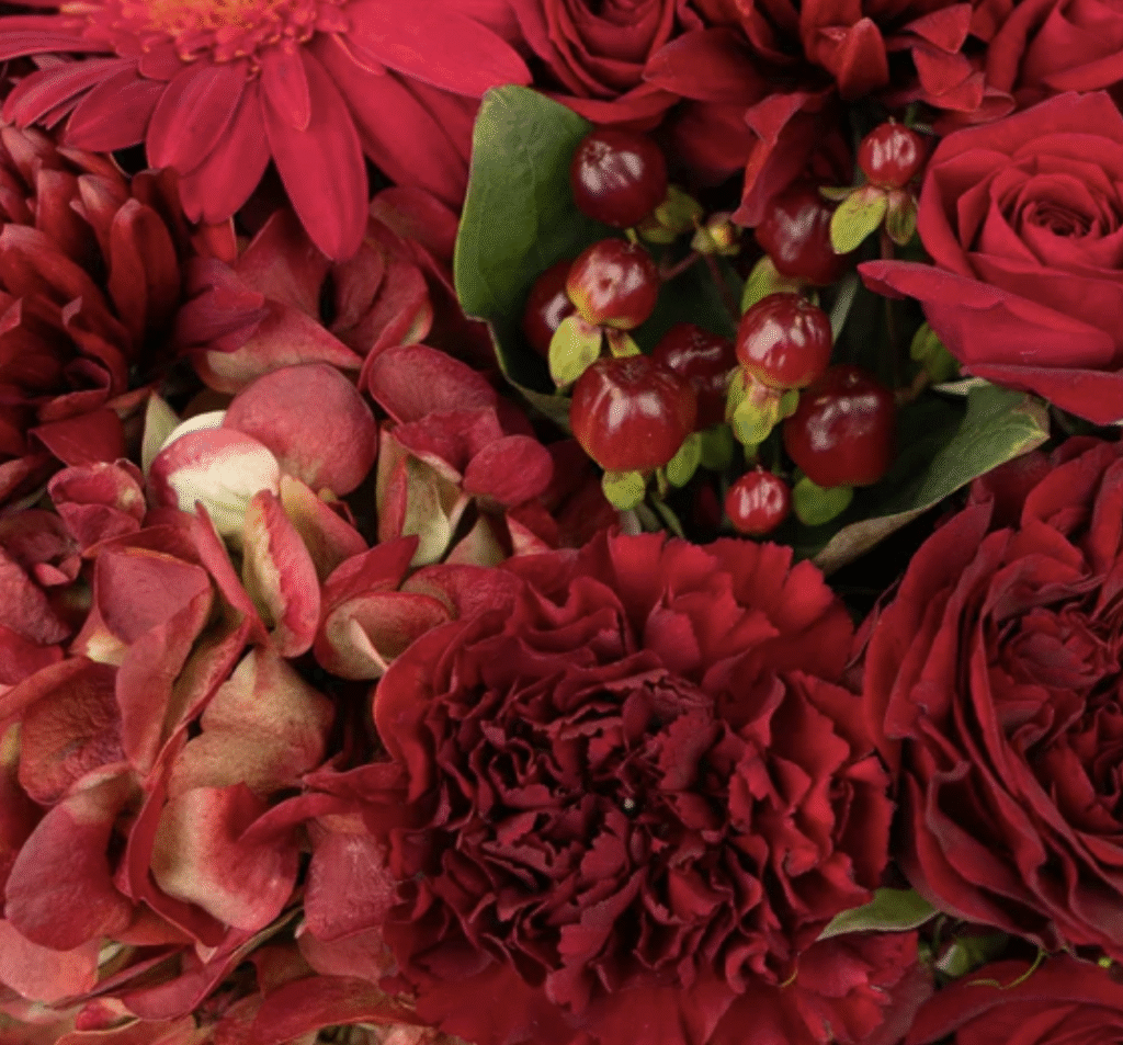 Add in a beautiful berry red in your floral arrangements. The perfect aesthetic of a festive and inviting atmosphere using the right colors for your end of fall wedding color palette.