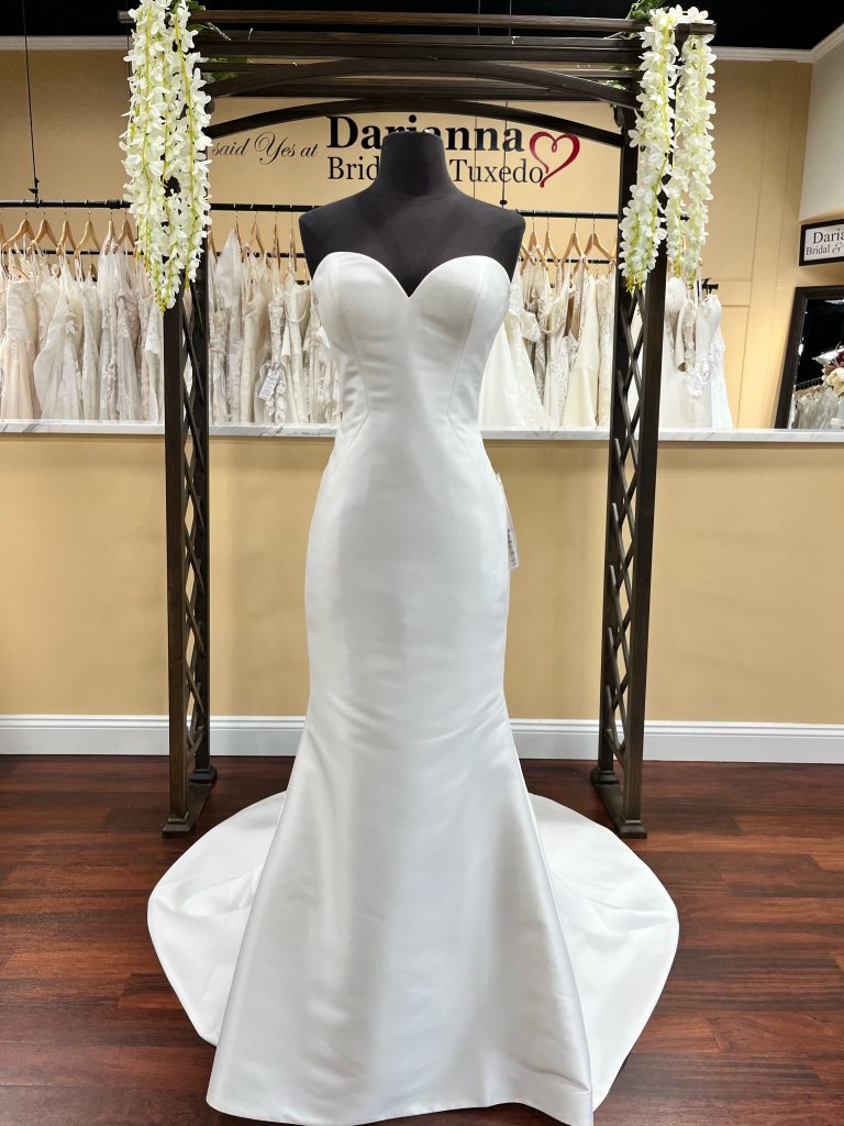 On the bodice, Nanelle has intricately placed seam lines that will give the illusion of a tight waist and hourglass fit, and who doesn’t want that! She consists of the classic sweetheart neckline and trumpet fit which will focus the attention on the bride’s figure.