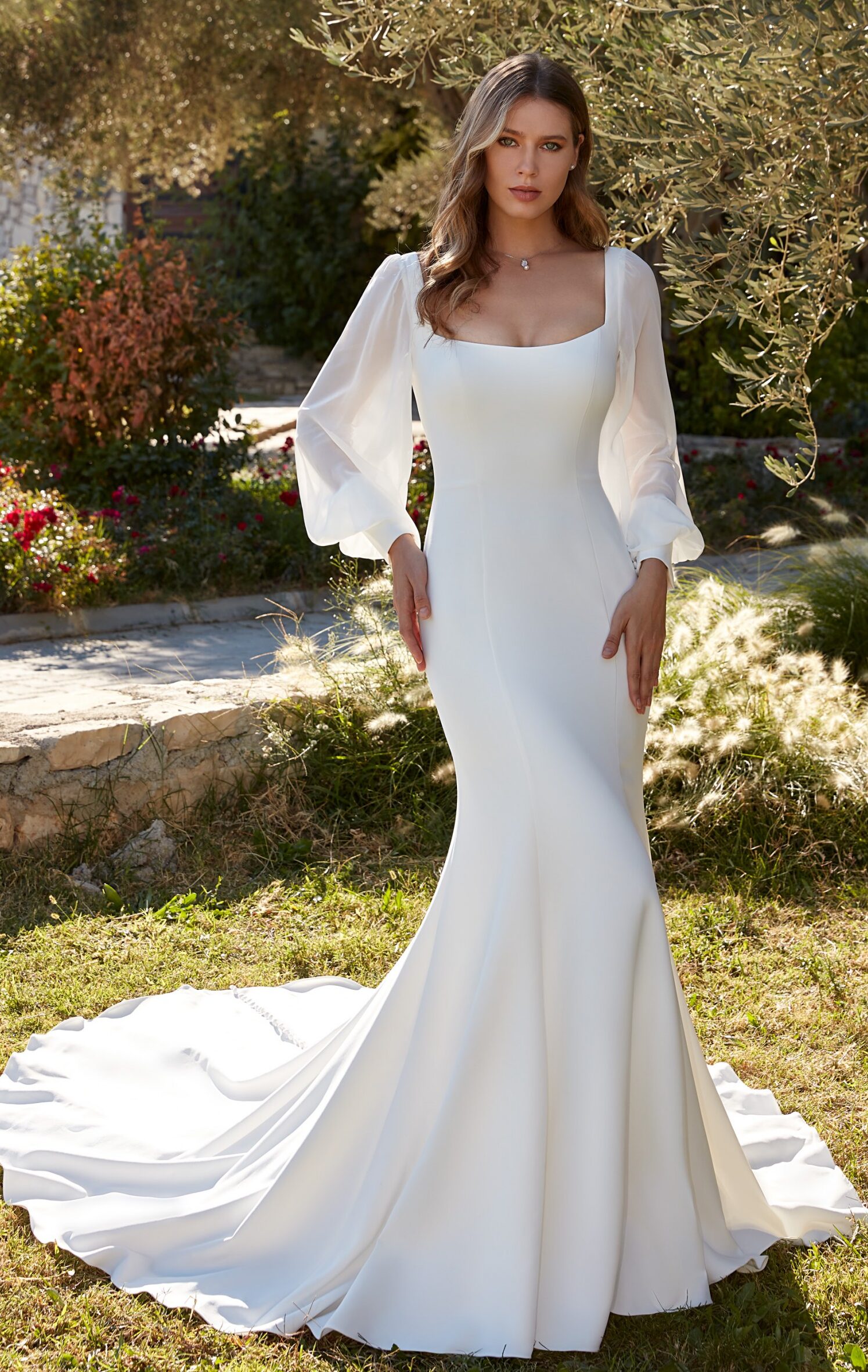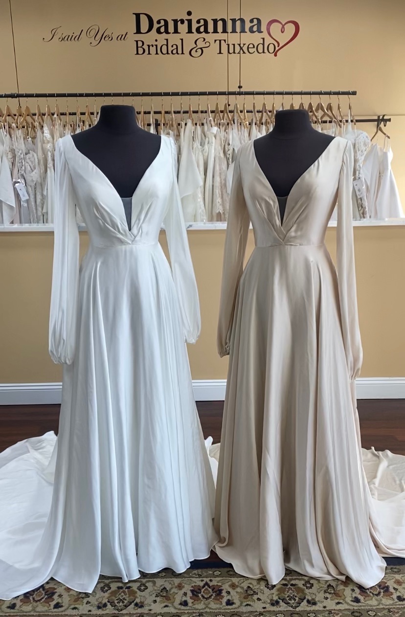 • The Dress – Winter wedding dresses are some of my personal favorites because I am all about the sleeve. And sparkles. Depending on your style, a long-sleeve plain dress can be a shimmery satin or crepe, or a beautiful glittery ballgown. The venue can play into this choice as well, if it is a grand ballroom then a bigger dress twirling the night away is perfect. A more intimate venue may call for a slimmer dress option for a candle light wedding. There are many different, yet appropriate, options!