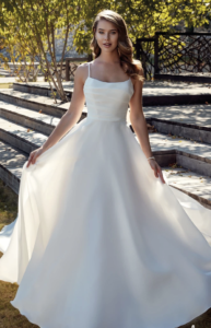 Check back often, our bridal gown sample sales changes regularly! They are easy to try on – simply text us or make an appointment online and tell us what dresses you want to try. We will have it ready for you.