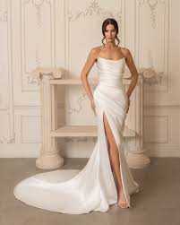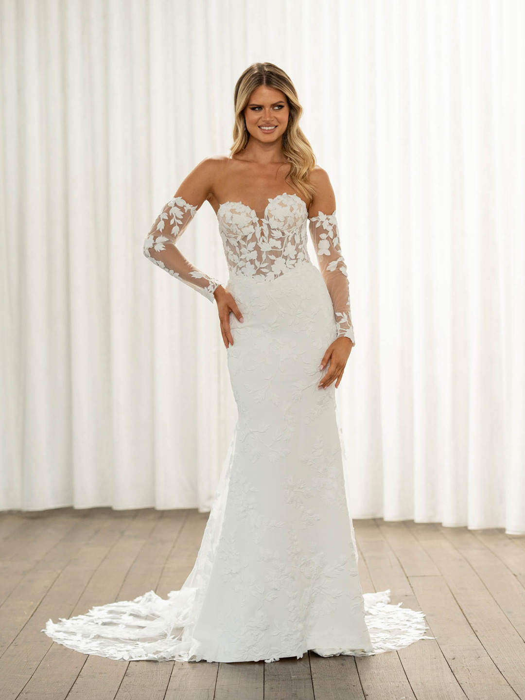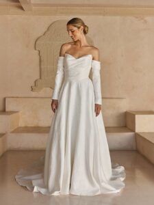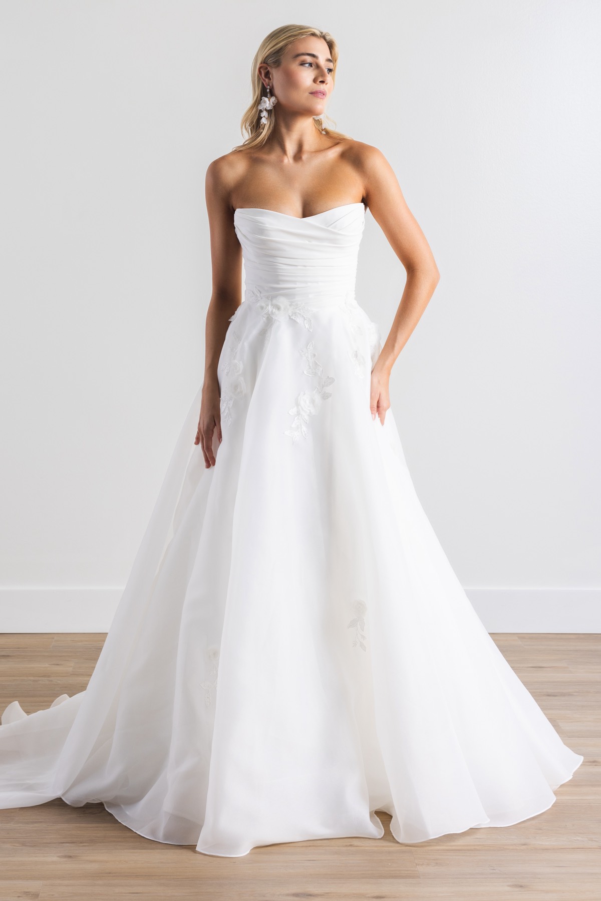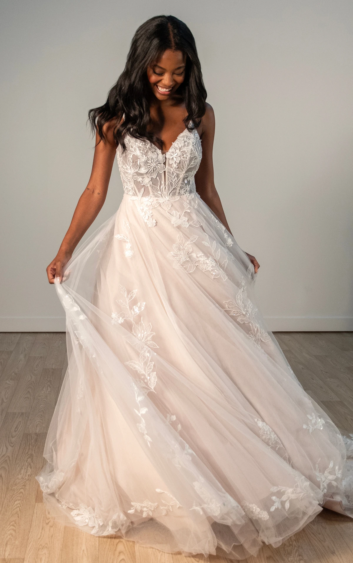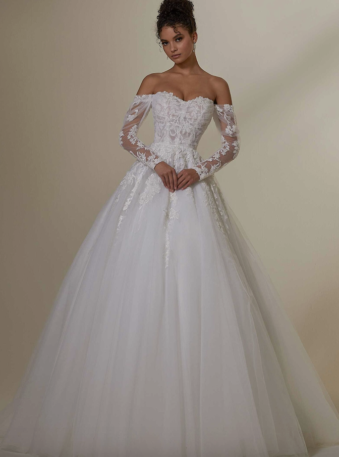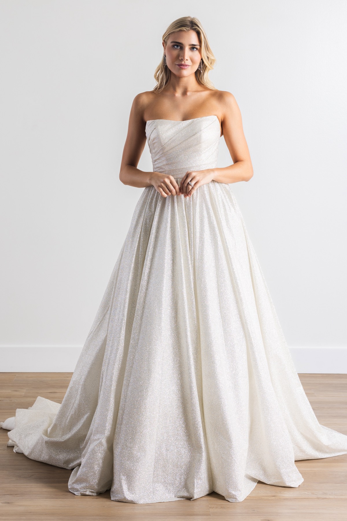 Most of our stunning sample bridal gowns on sale are in like-new condition having only been tried on in the store. Others have been modeled and admired in runway fashion shows. These dresses have been inspected and are priced accordingly based on condition, age, and designer.
